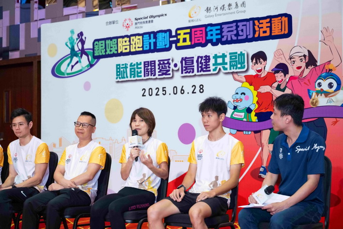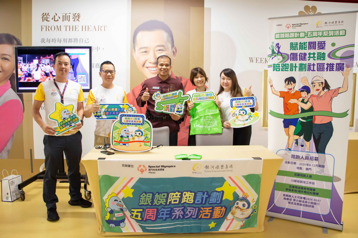 【本報消息】自2021年起銀娛攜手澳門特殊奧運會合辦「銀娛陪跑計劃」,組織旗下銀娛員工康樂會屬下跑友會成員,與特奧會運動員一同展開定期長跑訓練,並參加如「銀河娛樂澳門國際馬拉松」等體育盛事,以務實行動支持推廣運動共融精神。今年適逢計劃邁向五周年,銀娛與特奧會進一步拓展推廣規模,於早前走訪多家學校、社服機構及銀娛旗下物業的員工後勤區,向約1,500名師生、社服機構的會員與服務使用者,以及銀娛團隊成員等,介紹計劃內容,推動更多熱心人士及有特殊需要的運動員參與計劃。為分享計劃五年來的成果及歡迎新加入計劃人士,銀娛與特奧會日前舉辦了五周年系列活動的啟動儀式。
