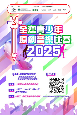 【本報消息】由澳門青年音樂協會主辦、政府文化基金資助的《全澳青少年原創音樂比賽2025》現已正式展開報名。比賽旨在推廣本地原創音樂,發掘並培育具潛力的音樂新秀,為本澳12至28歲的青少年音樂愛好者提供一個展示才華的專業平台,助力澳門音樂文化多元發展。