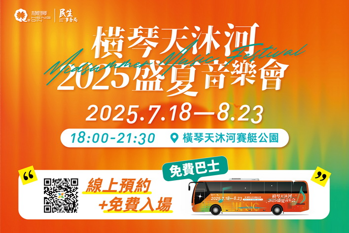 【本報消息】由橫琴粵澳深度合作區民生事務局主辦的「橫琴天沐河2025盛夏音樂會」本周五傍晚六時半在天沐河賽艇公園開幕。首周兩場音樂會已接受網上預約,有興趣人士可通過「橫琴民生」公眾號進入預約平台,或掃描二維碼進行預約,演出當天憑預約二維碼入場。為便利澳門居民參加音樂會,設有免費穿梭巴行走橫琴口岸和賽艇公園接送入場觀眾,演出場地附近並設停車場。