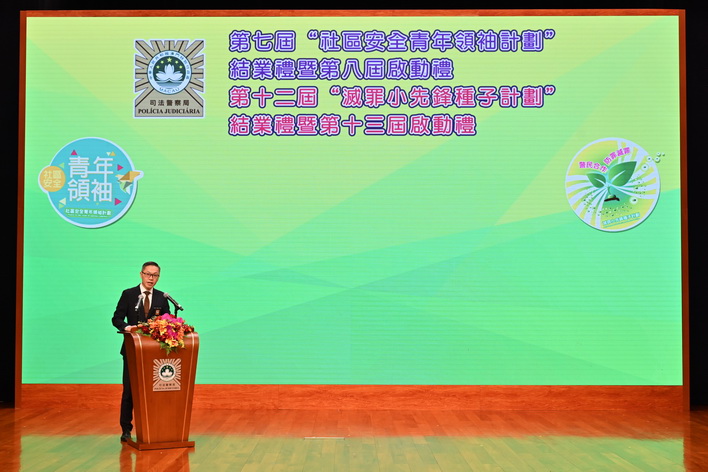【本報消息】為配合澳門特區政府青年政策,增強青少年的愛國愛澳思想,提升社會責任感和法治意識,司法警察局舉辦第七屆「社區安全青年領袖計劃」及第12屆「滅罪小先鋒種子計劃」結業禮暨新一屆計劃啟動禮。局長薛仲明勉勵學員遵紀守法、維護正義,將所學所得轉化為服務社會的實際行動,為青年群體樹立榜樣,為維護國家與澳門安全貢獻青年力量。