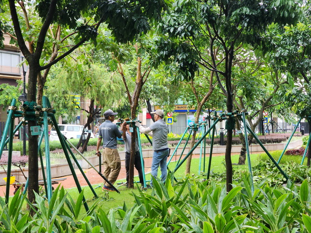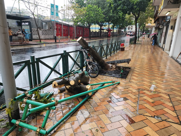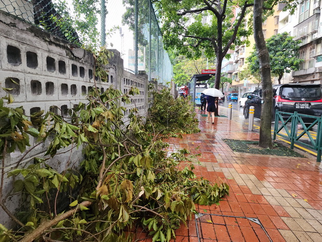 颱風期間,不少街道樹木和廣告橫幅被強風吹毀,部份樹幹和樹枝被暫時堆放在馬路或行人道一旁等待清理,而部份掛在燈柱上的廣告橫幅同樣等待處理。市政署早上近九時公佈全澳公園、步行徑、單車徑等綠化及休憩設施在颱風中同樣受到不同程度損毀。署方周日晚起已抽派人手,加緊進行巡查並進行安全評估,為保障公眾安全,周一早上仍然暫時關閉全部步行徑和大部份公園,暫停開放的公園、步行徑和單車徑等設施入口處張貼告示;中午左右部份暫停開放的公園完成檢查和必要的除險工作後,已逐步開放,但仍見有工作人員在公園內扶正樹木和清理落葉,亦有部份設施暫時圍封暫停使用。