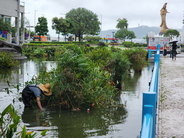【本報消息】隨著熱帶氣旋「韋帕」減弱和遠離本澳,氣象局於周一早上六時取消有熱帶氣旋警告信號。颱風過後,市政部門加緊市面清理工作,早上一度暫停開放大部份公園和全部步行徑,經過檢查和除險後,八成公園於下午陸續重新開放。而「韋帕」的外圍雨帶由中午起也開始再度影響本澳,氣象局需再再次發出黃色暴雨警告,當局預測周二本澳仍然間中有驟雨及雷暴,周三有幾陣驟雨但會略見陽光,周中起天氣再度轉為酷熱,但下周初天氣會再度變得不穩定。