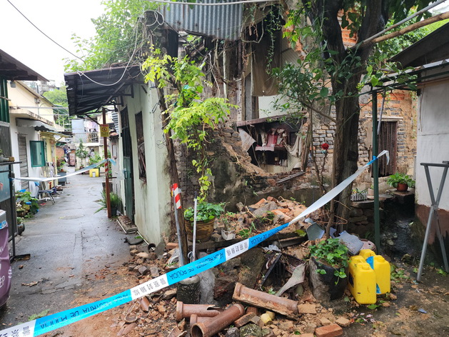 此外,治安警上午接報茨林圍門牌10發生一宗屋宇倒塌事件,現場所見該建築外牆倒塌,面積約為兩米乘三米,現場消息指該建築物空置多年,過往亦曾發生倒塌事件,今次無人受傷或波及周邊建築,附近行人通道則暫時封閉。