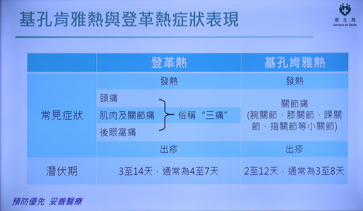 患者是33歲女旅客,居住於廣東省佛山市南海區。7月21日中午入境澳門,同日下午出現發熱和皮疹,即日前往鏡湖醫院就診;22日經公共衛生化驗所檢測證實感染基孔肯雅熱病毒。患者目前病情穩定,其同住及同行人士暫無不適。
