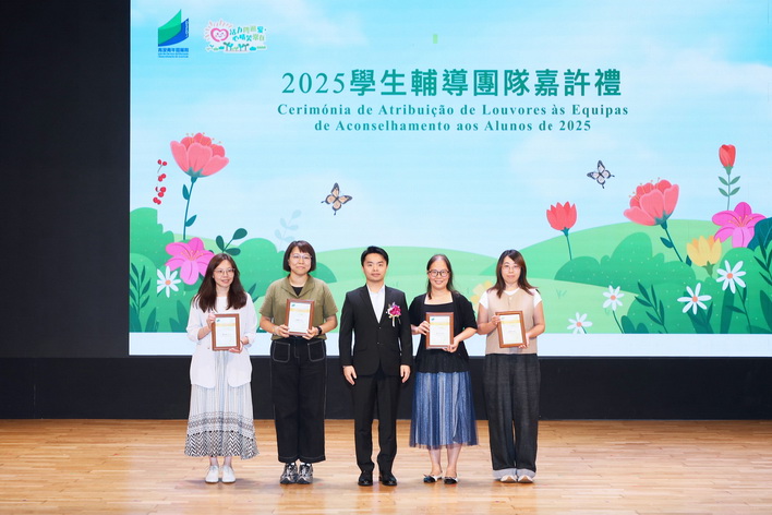 【本報消息】教育及青年發展局於日前在中葡職業技術學校舉辦「2025學生輔導團隊嘉許禮」,向服務滿一定年期的學生輔導團隊成員頒發服務獎項,表揚其多年來恪盡職守和熱心服務,來自10間學生輔導機構的負責人及輔導同工約200人出席。