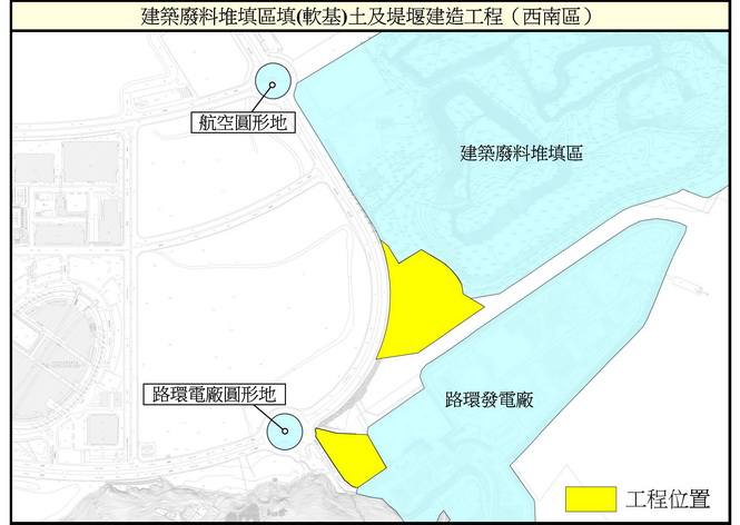 公建局土木工程師黎兆泉表示,為更好地善用土地資源,特區政府計劃在路氹建築廢料堆填區南堤堰與路環發電廠之間的區域建造堤堰,以創造空間處理陸上工程項目開挖產生的軟土層地基土。項目佔地面積約兩萬平方米,建成後約可容納軟基土約10.6萬立方米;工程主要包括建造圍堰、鋼便橋及臨時排水系統等。
