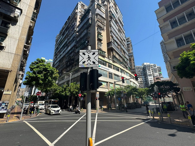 【本報消息】繼中心街與看台街交界增全向行人過路設施後,為進一步優化過路環境及保障行人安全,交通事務局也檢視了近鏡平學校中學部的中心街與馬場大馬路交界路口的交通情況、道路條件,進一步將該交通燈控制路口調整為全向行人過路設施,有關設施已於上周六正式啟用。