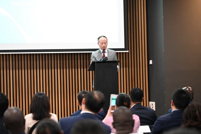 在招待會上,中葡合作發展基金管理公司總經理張健做專題推介。秘書長在致辭中強調,中葡論壇各與會國始終信守共同發展初心,堅守合作共贏理念,第六屆部長級會議與會各國部長注意到相關各方在推動落實高品質共建「一帶一路」所作的努力,同意推動建設普遍、基於規則、開放、非歧視和公平的多邊貿易體制,推動經濟全球化朝著更加開放、包容、普惠、均衡、共贏的方向發展。
