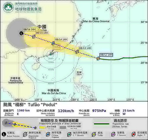 【本報消息】氣象局指受位於台灣地區以東的熱帶氣旋「楊柳」外圍下沉氣流影響,本澳周三(8月13日)日間天氣非常酷熱,高溫有機會觸發午後熱對流。預料「楊柳」將於周三中午前後進入本澳800公里範圍,屆時氣象局將會發出一號風球。