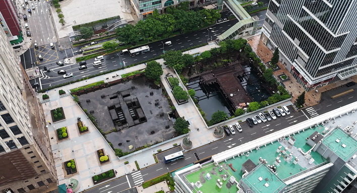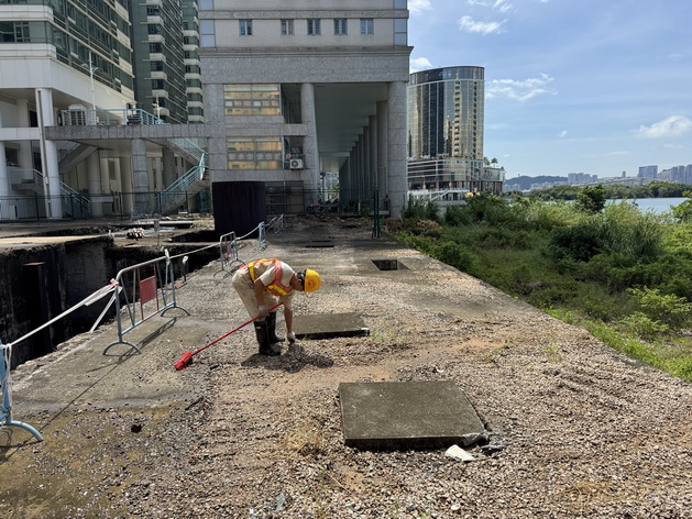 為收集三幅用地的現狀資料,尤其已局部建成地下結構物的實際狀況,以便籌備後續方案編製及諮詢工作,公共建設局已啟動前期工作,目前已基本完成A3及A4地段的抽排積水及清理工作,正進行測繪記錄;而A9地段因現存建築物結構狀況較為複雜,抽排積水仍在進行當中,但已提前清理雜草雜物和地面積水以預防蚊患。