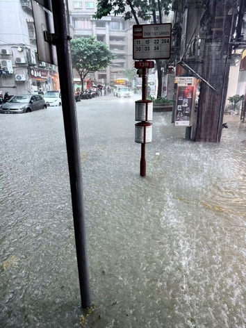 暴雨下氣象局發黑雨 氹仔多地水浸嚴重