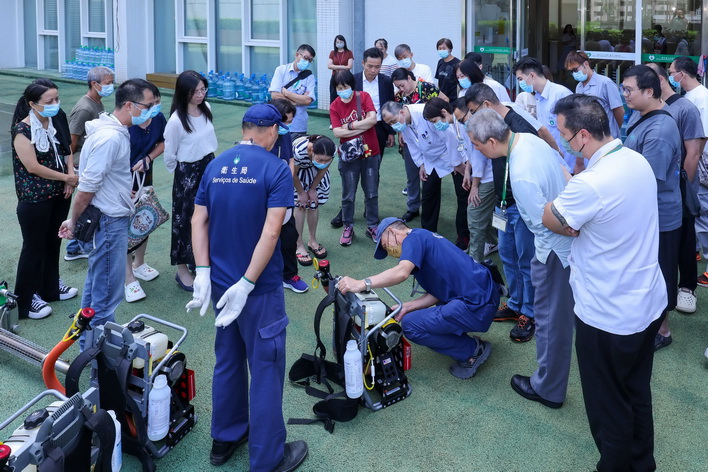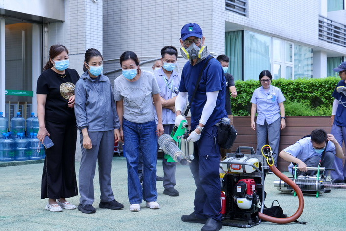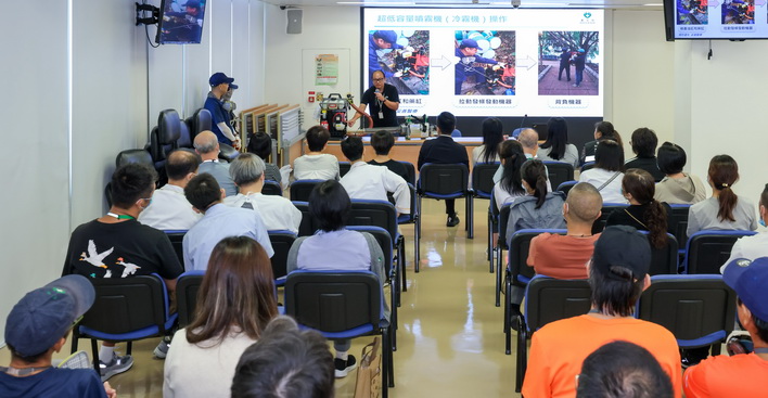 是次培訓課程涵蓋四個範疇:第一部分是理論知識講授,介紹蚊媒傳染病的流行特性及防控策略;第二部分是滅蚊機器及藥物應用專題,包括熱霧機、冷霧機的工作原理、適用場景與使用注意事項等;第三部分為防護裝備穿戴指導,介紹操作人員安全防護裝備;第四部分是滅蚊機器操作流程實訓,結合理論講解與實務操作,由衛生局疾病預防及控制中心的資深專業人員現場示範各類設備的調校、啟動、噴灑技巧及維護保養方法等。培訓採用小組制教學模式,確保每位學員均有充分的實操機會,專業人員全程指導並即時糾正操作不當之處,通過實境練習確保學員熟練掌握滅蚊技術要領,提升其化學滅蚊的實戰能力。
