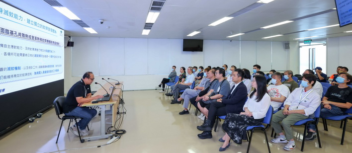 【本報消息】本澳正處於白紋伊蚊活動高風險季節,加上鄰近地區登革熱及基孔肯雅熱(雙熱)個案呈上升趨勢,因應跨境人員往來頻繁,本澳輸入性雙熱個案可能增加,不能排除出現社區傳播的風險。衛生局積極部署防控應對工作,為提前儲備防蚊滅蚊的社會資源及強化相關應對能力,已聯動社會各界包括政府部門、學校、企業及物業管理業界等,開展組建及擴大滅蚊隊伍的工作。衛生局已有15名專責滅蚊的同事,現從內部再抽調約60人於日前一連兩天進行「滅蚊技術應用培訓」,讓該批人員熟練掌握化學滅蚊技能,作為衛生局滅蚊人員儲備。衛生局羅奕龍局長、疾病預防及控制中心主任梁亦好醫生等出席培訓班一同學習。