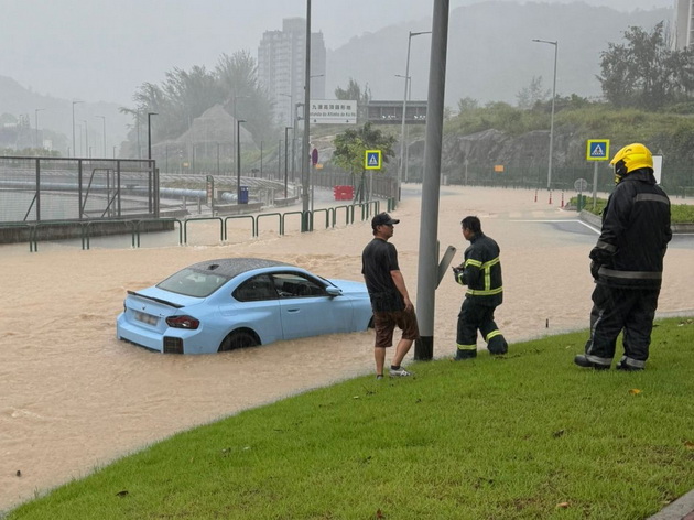 【本報消息】14日本澳暴雨持續,氣象局先後發出紅色及黑色暴雨警告,在暴雨情況下,氹仔及路環多處出現嚴重水浸。為保障市民及旅客安全,暴雨及特殊天氣行動小組啟動了多項應急措施,民防行動中心隨即通過低窪地區音頻廣播系統實時發出警示,提醒公眾遠離危險區域。