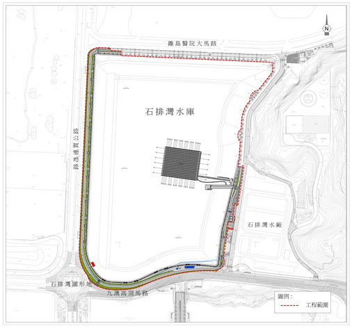 為加強澳門的城市供水安全,提高澳門淡水資源的儲備能力及供水系統在應對突發事故的能力,特區政府啓動「路環石排灣水庫擴容工程」。項目同時會於水庫南側及西側增建休憩區,延展水庫東側及北側現有的綠化、單車徑、跑步徑及步行徑;亦會於水庫面安裝太陽能光伏發電系統,並將產生的電力供予鄰近的石排灣水廠。