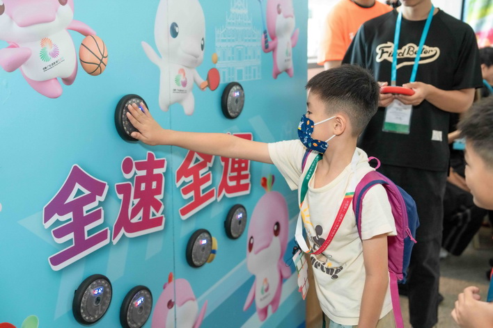 活動現場亦設有全運會拍照打卡道具,讓市民留下與全運精彩同行的美好回憶,超萌吉祥物「喜洋洋」和「樂融融」亦登場與市民可愛互動,一對五米高吉祥物充氣造型現身鬧市,吸引粉絲和市民爭相合影,現場氣氛喜氣洋洋、樂也融融。
