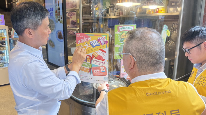 為擴大活動宣傳力度,讓活動資訊深入本澳社區,經濟及科技發展局與澳門中華總商會正全面展開系列宣傳工作。近日,雙方落區走訪社區商戶,現場派發宣傳海報,並詳細講解活動內容、參與條件及核銷細則,推動社區商戶積極響應,主動配合特區政府促消費措施;同時鼓勵商戶同步推出疊加優惠,共同激發社區消費潛力,助力社區經濟發展。