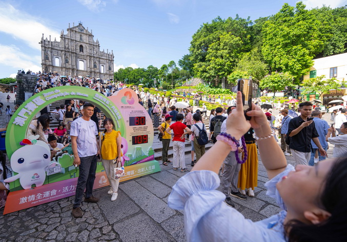另外,澳門賽區籌備辦公室也透過多元化社區宣傳元素,營造「全民全運」的熱烈氛圍。其中為了讓市民與旅客感受到全運會的臨近氣氛,全澳多個地點包括耶穌會紀念廣場(大三巴)、祐漢街市公園、關閘廣場、三盞燈圓形地、南灣湖景大馬路行人道及氹仔運動場圓形地設置了「倒計時打卡裝置」,營造全民期待的氛圍,留下與全運同行的美好回憶。