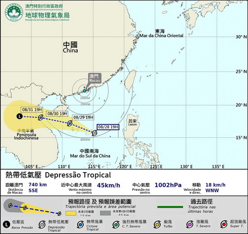 氣象局早在本周二已預告將有一個低壓區進入南海並逐漸發展,結果該低壓區周四下午在南海中部發展成熱帶低氣壓,並進入本澳800公里範圍,本澳隨即在晚上七時發出一號風球,該熱帶低氣壓集結在澳門東南偏南約740公里處,以時速約18公里向西北偏西方向移動並逐漸加強,大致趨向海南島以南海域。