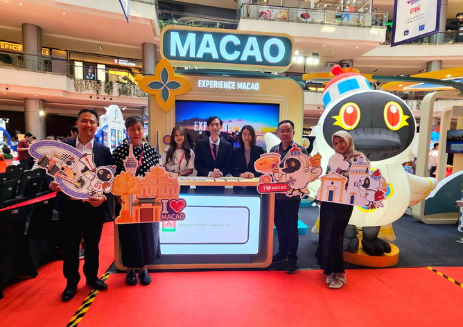 澳門本年首度躋身「穆斯林友善旅遊目的地」,乘勢拓展客源市場。繼今年二月旅遊局再赴印尼參加2025印尼國際旅遊展,並於8月28日至31日展期內,在展區設置36平方米的「澳門館」;館內設有大型澳門旅遊吉祥物「麥麥」、具澳門特色佈置的藝術裝置及互動遊戲,推廣澳門世界遺產、盛事活動、美食和休閒旅遊等「旅遊+」元素。展位頂部更以「麥麥」的心口徽章連結賽車跑道,展示澳門風情及充滿活力的氛圍。