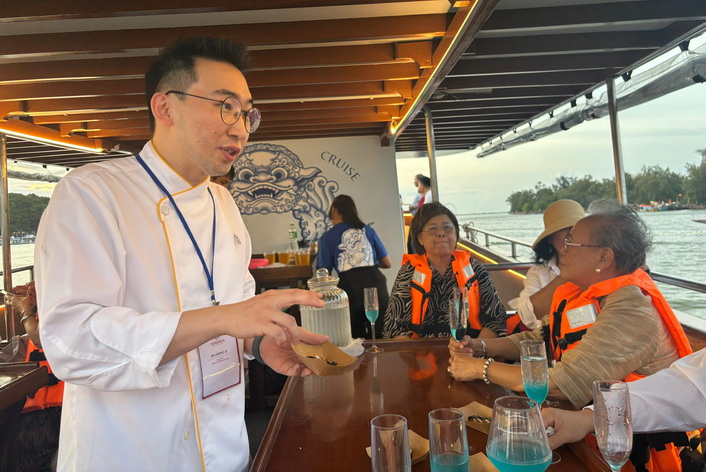 諸俊昊在廚藝交流展示環節上,向宋卡及美食之都眾廚師介紹澳門中西薈萃的美食傳統,並且選用宋卡的地道食材海鱸和棕櫚糖,揉合澳門馳名蝦醬的美味與葡式馬介休球的烹調靈感,炮製別具創意的融合菜式。