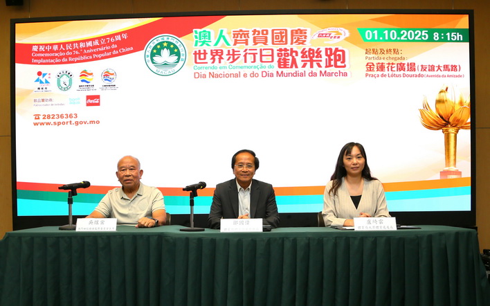 【本報消息】為熱烈慶祝中華人民共和國成立76周年,並響應國際群眾體育協會提倡的「世界步行日」,體育局將於10月1日早上8時15分在金蓮花廣場舉行「2025澳人齊賀國慶世界步行日歡樂跑」。活動當日將舉行國慶升旗禮、歡樂跑及步行慶祝活動,讓澳門市民透過齊參與有益身心的體育項目,一同感受國慶的喜悅。