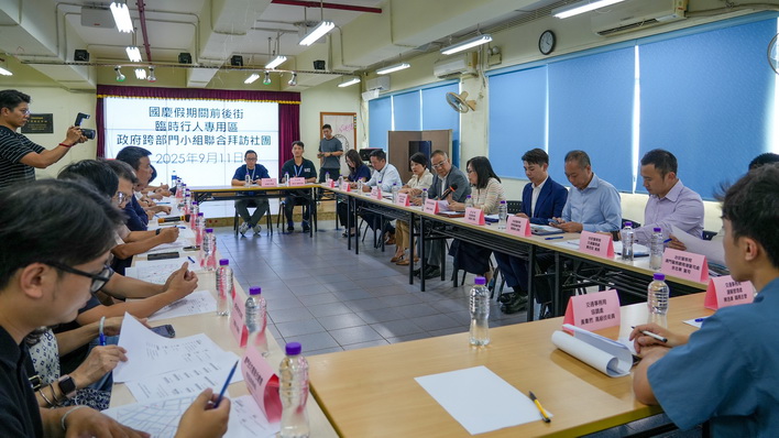 由經濟及科技發展局、市政署、旅遊局、治安警察局、消防局、文化局、15運及殘特奧運澳門賽區籌備辦公室,以及交通事務局組成的政府跨部門工作小組,分別與氹仔、澳門中南區的社團和商會進行交流會議,圍繞國慶期間在氹仔舊城區及澳門關前後街設臨時行人專用區的具體安排、交通、人流、道路指示牌及公共衛生等方面進行探討,與會者就相關措施提供了優化意見及建議,政府跨部門工作小組將認真研究,進一步完善臨時行人專用區的設置方案。
