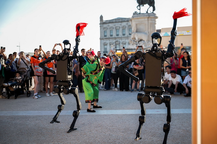 美高梅以「科技+娛樂」為主題設計展位,重點推介全新澳門文旅地標「保利美高梅博物館」及駐場演出《澳門2049》。為讓觀眾沉浸式體驗尖端科技和中華傳統文化的完美融合,美高梅首次於路展中呈獻原創表演《秧歌.數控》,其靈感源自《澳門2049》同名章節,由河北昌黎地秧歌舞者與中國科技品牌「宇樹」的機器人共同演出,透過紅火奔放、樂觀詼諧的秧歌舞蹈與冷峻機械的強烈對比。此演出不僅特別為歐洲觀眾量身改編,更是首次將廣獲好評的《澳門2049》機器人帶到海外,展現傳統與未來的精彩對話,深受現場觀眾歡迎。