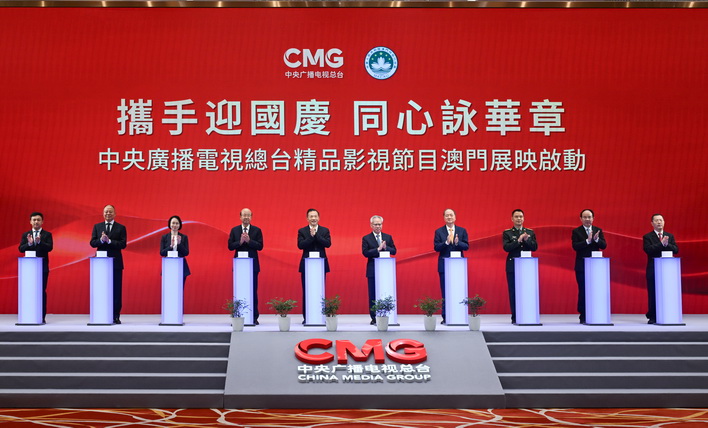 岑浩輝還與一眾主禮嘉賓共同啓動「攜手迎國慶、同心詠華章」總台精品影視節目澳門專場展映。