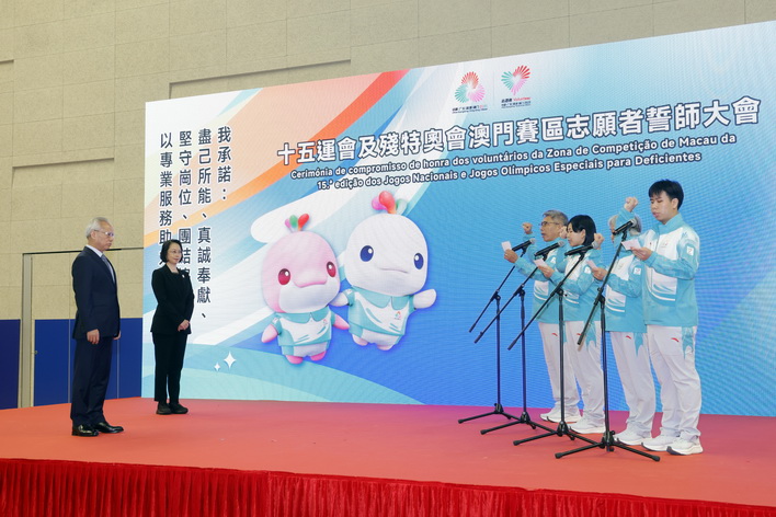 另外,在行政長官監誓下,全場1,500名志願者莊嚴宣誓,承諾盡己所能、真誠奉獻、堅守崗位、團結協作,以專業服務助力賽事,以溫暖笑容展現澳門風采,為全運澳門賽區增添光彩。