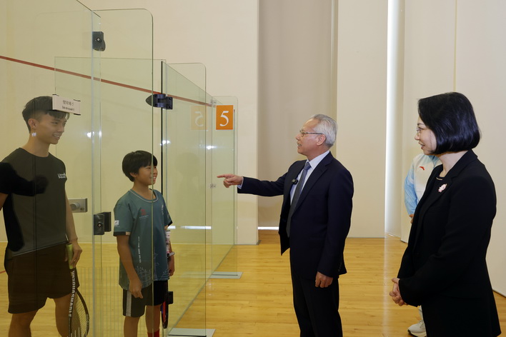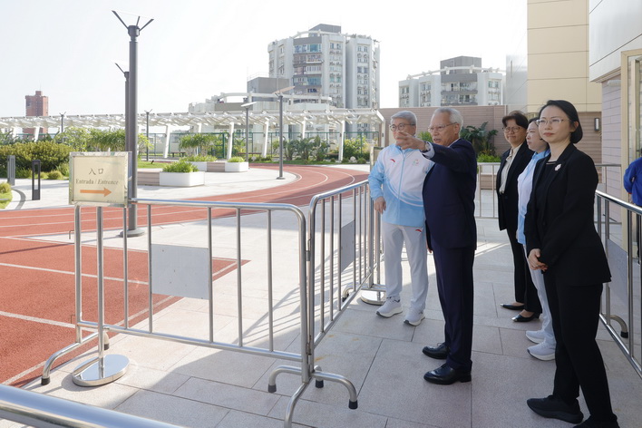 授旗儀式暨誓師大會結束後,岑浩輝還在柯嵐陪同下視察望廈體育中心的多項運動設施,了解相關設施日常的使用情況,並與市民親切交流。
