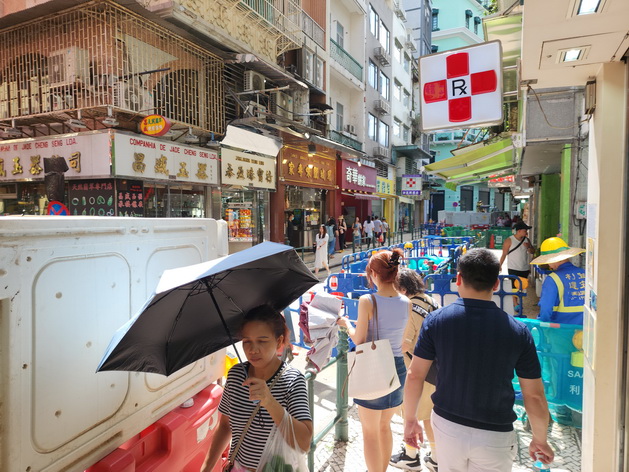 【本報消息】營地大街預留管線試點項目工程日前正式展開,考慮到工程涉及區內交通循環調整,工程實施初期,交通事務局聯同施工單位進行現場駐點視察,因應實際情況及社會意見,及時調整各項臨時措施的安排,包括於具條件位置擴闊行人通道、理順臨時指示牌安排、延長巴士站駐點人員時間等。
