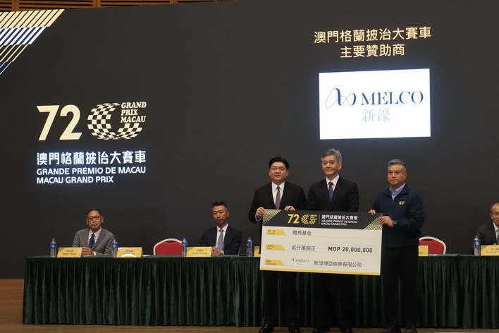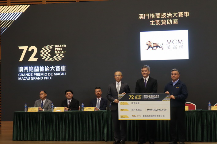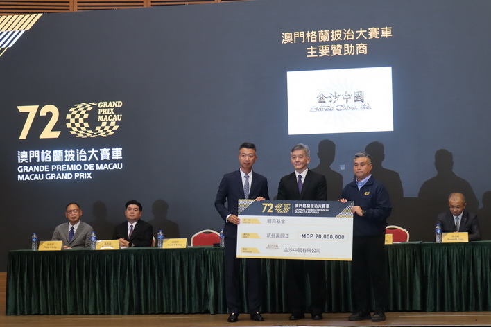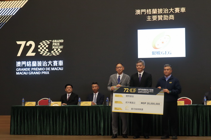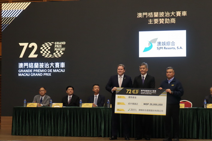 他在會上宣佈本澳六家綜合度假休閒企業再度成為今屆大賽車的主要贊助商,並期望各企業充分發揮自身的資源和優勢,為大賽車注入更豐富的周邊元素及多元宣傳渠道,增強大賽車帶來的社會和經濟效益。儀式上社會文化司司長辦公室代主任黃有力和莫子恆代表政府接收六家休企的贊助支票,每家休企贊助金額為2,000萬澳門元。