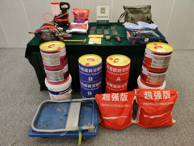 司警介紹案情時指,一名本地女子於本月二日因家中出現滲漏水,其後在網上社交平台見到有所謂本地公司可協助進行防滲漏工程,事主遂根據資料聯絡客服了解。至同日下午其中兩名涉案男子帶同儀器登門,並向事主訛稱工程不需鑿牆,僅需在牆上開小洞灌入防水膠水便可,每公斤防水膠收費980澳門元並稱會永久保用。
