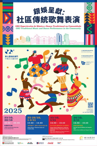 「銀娛呈獻:社區傳統歌舞表演」誠邀市民及旅客親臨現場,共同感受中葡文化交融的藝術魅力。演出詳情及場次安排可瀏覽「相約澳門——中葡文化藝術節」專頁(www.icm.gov.mo/FCP)、Facebook專頁「IC Art藝文棧」或微信公眾號「澳門文化局IC」。