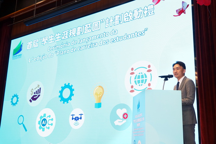 龔志明致辭時表示,特區政府按照學生不同成長階段的需要,建構涵蓋生涯規劃、升學實習、就業創業、職涯向上流動的「四階梯」。為了更精準對接學生個人需要和澳門社會發展趨勢,「學生生涯規劃藍圖」計劃聚焦認識自己、認識升學路向、認識工作世界、認識就業環境、發展工作技巧以及建立個人生活模式六大目標,協助學生將興趣與能力轉化為清晰的目標與行動藍圖。2025/2026學年計劃更首次將活動延伸至小六學生,進一步將生涯規劃的理念有效下沉至高小階段。他勉勵學生把握時代發展的機遇,按照心中的生涯規劃藍圖,以夢為馬、揚帆起航,在更廣闊的天地裡建立自己的理想和事業。