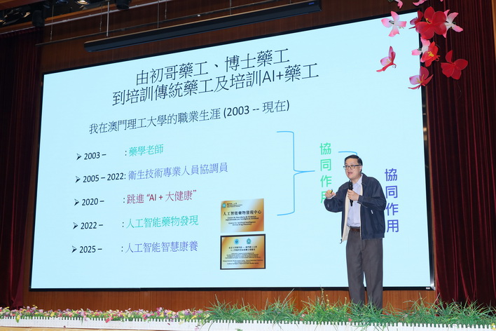 活動上,理大應用科學學院人工智慧藥物發現中心主任唐海誼及澳門知識產權產業商會理事長、會議展覽業協會副理事長盧德忠進行生涯規劃專題分享,透過個人及職涯經歷啟發學生,鼓勵學生勇敢築夢,描繪屬於自己的未來藍圖。隨後再由教青局代表分享升學規劃資訊。