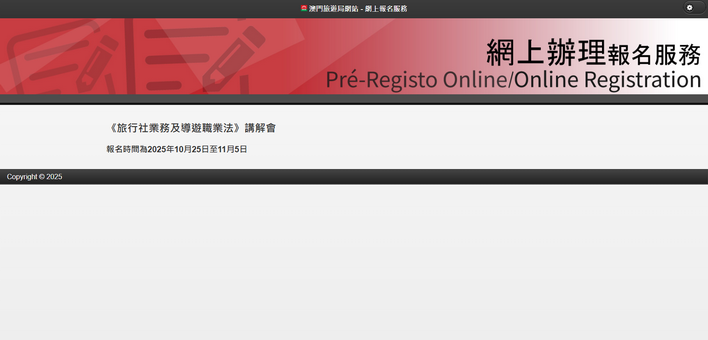 有意參與講解會的人士可於10月25日至11月5日期間透過旅遊局網站(ep.macaotourism.gov.mo/ereg/newLawSeminar.php)報名參加,名額先到先得。