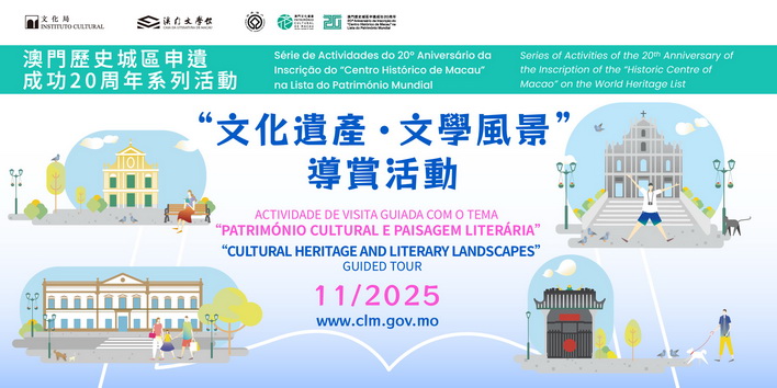 【本報消息】為慶祝澳門歷史城區申遺成功20周年,文化局轄下澳門文學館將於11月舉辦四場「文化遺產.文學風景」導賞活動,以文學為切入點,透過互動方式推廣蘊藏在澳門文化遺產景點中的文學價值,加深市民對澳門文化遺產的認知,增進文學知識。活動費用全免,即日起可透過一戶通登記參加。