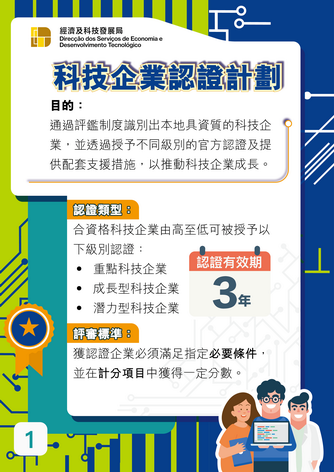 【本報消息】為配合特區政府「1+4」適度多元發展策略,致力完善科技產業發展的體制及政策環境,經濟及科技發展局持續推行《科技企業認證計劃》,通過評鑑制度識別出本地具資質的科技企業,為本澳科技企業構築成長階梯,助力企業發展。計劃至今已推出五輪申請,合共有51間本地科技企業獲得認證資格,包括七間重點科技企業、一間成長型科技企業及43間潛力型科技企業,業務範圍涵蓋集成電路、資訊科技、中醫藥、新材料及生物技術等多個領域。