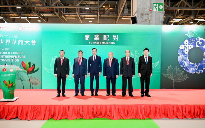 【本報消息】由澳門中華總商會主辦的「第18屆世界華商大會」由11月2日至4日於澳門威尼斯人會議展覽中心及澳門銀河國際會議中心舉行,大會並於周一舉行商業配對活動,中總會長崔世昌、理事長馬志毅,招商局行政管理委員會主席謝永強,香港中總會長蔡冠深,新加坡中總高泉慶,泰國中總主席林楚欽出席活動。