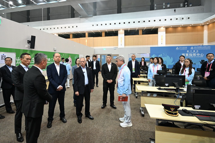 行程中,岑浩輝聽取了各項賽事籌辦情況、志願者工作、運動員安排,以及運動會期間醫療、保安、交通等部署的工作匯報。他認為澳門賽區各項工作和安排已準備就緒,包括比賽場地和軟硬件措施順利完成設置,所有人員和配套都落實到位,各項協調工作均已作好部署。他深信,在澳門賽區組委會全體成員部門的高度配合和協作下,定能高質量辦好所有賽事,有效處理各項程序及應對任何情況。