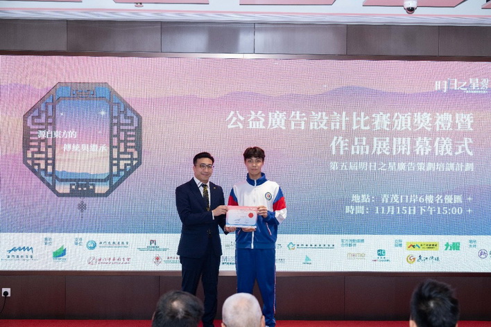 澳門廣告商會理事長勞錦輝於典禮上致辭時表示,「明日之星」計劃積極配合澳門特區政府「1+4」經濟適度多元發展策略,透過系統化培訓與實戰機會,為本地有志學子搭建通往廣告業的橋樑。