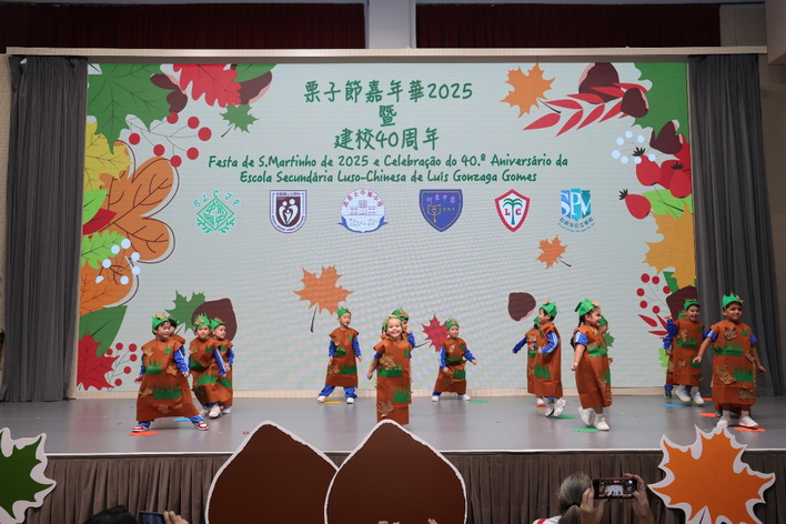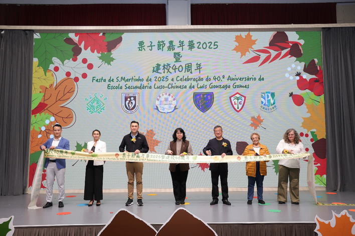 【本報消息】為向大眾推廣葡國傳統節日文化,提升學生學習葡語的興趣,教育及青年發展局轄下七所公立學校早前在高美士中葡中學舉辦了「栗子節嘉年華2025暨建校40周年」活動,教青局副局長阮佩賢、廣州巿第六中學黨委書記劉建祥、葡國姐妹學校校長Maria Guilhermina Dias Gonçalves Rodrigues、澳門中葡經貿文化促進會會長Adelino da Conceição de Assis、澳門葡人之家協會主席Amélia António及東方葡萄牙學會理事Vanda Santos 主持開幕式。