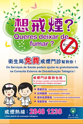 今年的11月19日是世界衛生組織及慢性阻塞性肺病全球倡議組織訂定的「世界慢性阻塞性肺病日」,主題為「呼吸不順暢,當心慢阻肺」(Short of Breath, Think COPD),旨在喚起各界關注和瞭解慢性阻塞性肺病。而衛生局防控煙酒辦公室及衛生督察於近日透過不同方式加強向吸煙人士推廣衛生局戒煙門診服務及《控煙法》等,鼓勵吸煙人士為了自己和家人的健康著想應立即戒煙,共同構建無煙健康生活環境。