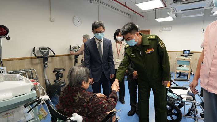 駐澳部隊官兵代表首先參觀了悅暉護養院的院舍設施,包括住宿房間、物理治療室及職業治療室等。駐澳部隊官兵代表向長者問好,向他們致以真摯的祝福,肯定他們為澳門建設發展做出的貢獻。