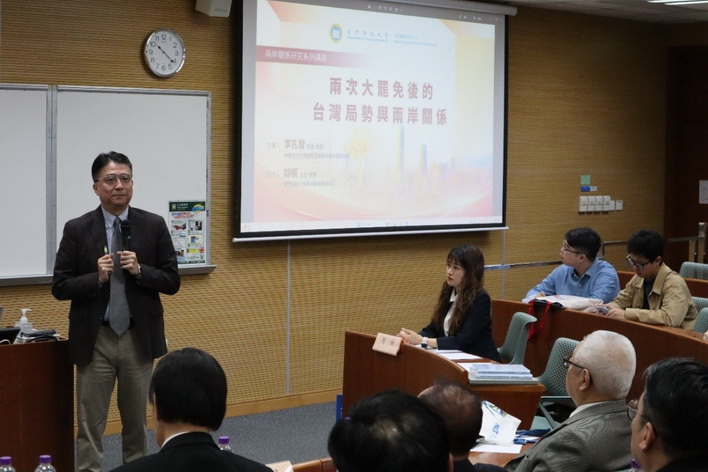 李孔智教授是中國文化大學國發所所長、兩岸關係發展協會秘書長,專長為政治經濟學、兩岸關係和中山學術。講座中,李孔智教授介紹了近期發生的台灣熱點事件,分析了這些事件產生的原因和帶來的影響。