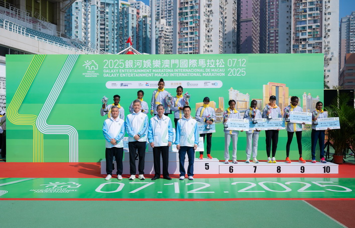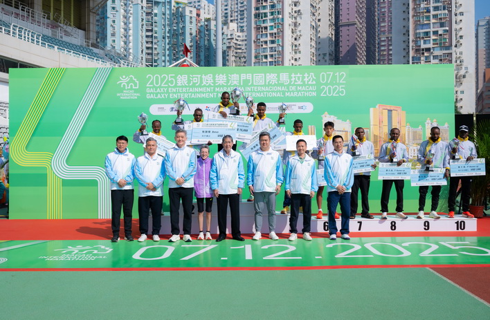 【本報消息】由體育局、銀娛及澳門田徑總會主辦的「2025銀河娛樂澳門國際馬拉松」周日於奧林匹克體育中心運動場圓滿舉行,馬拉松男子全場組別由肯尼亞的杰志釗(Victor Kipchirchir)勇奪冠軍,同時刷新大會紀錄,而馬拉松女子全場組別則由埃塞俄比亞的辛妮(Mastewal Birhanu Senay)封后;馮瑛瑋和吳楊楊則分別贏得馬拉松澳門運動員男子組和女子組冠軍。