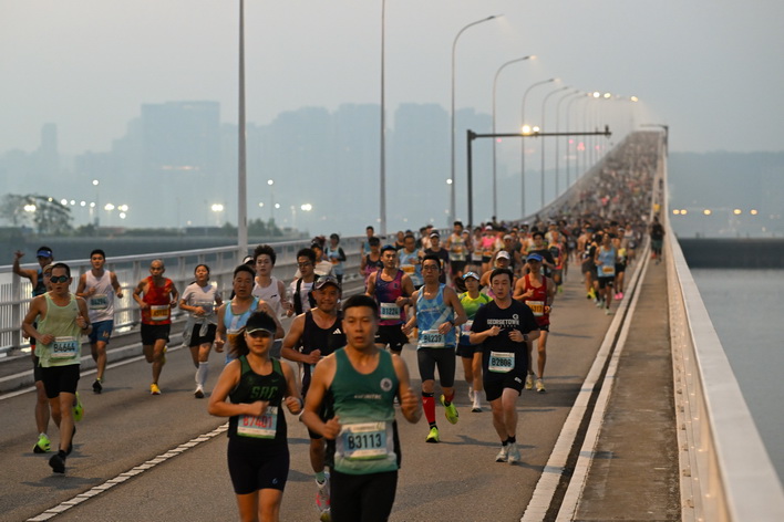 踏入第44 屆的「澳門國際馬拉松」賽事於當日上午六時展開,馬拉松及半程馬拉松路線途經嘉樂庇總督大橋、世遺景點媽閣廟以及西灣大橋等景點。社會文化司司長柯嵐、體育局代局長李詩靈、銀娛主席呂耀東、澳門田徑總會理事長陳步倩和銀娛企業事務董事林志成主持鳴槍起跑儀式。