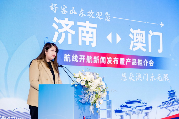澳門航空「濟南—澳門」航線開航新聞發佈及產品推介會於10日假濟南洲際酒店舉行。旅遊局副局長司徒琳麗致辭時表示,魯澳在旅遊領域有著密切交流和合作,兩地在推動旅遊業高質量發展、促進文化和旅遊深度融合發展上有紮實基礎。相信「濟南—澳門」航線將進一步促進山東與澳門兩地的經濟、旅遊及文化交流,為旅客提供更便利的旅遊選擇,促進客源互送。